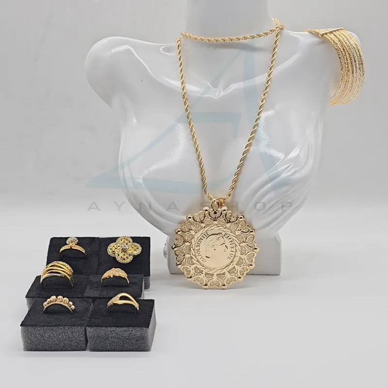 ميدالية الدولار + سبعيات +خاتم هديةمطابق للذهب